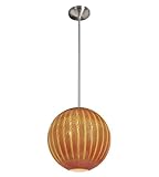 Access Lighting 23640 Art Deco / Retro 12" Diameter 1 Light Down Lighting Pendant from the Safari Coll, Brushed Steel / Silver Amber Ribbed Opaline