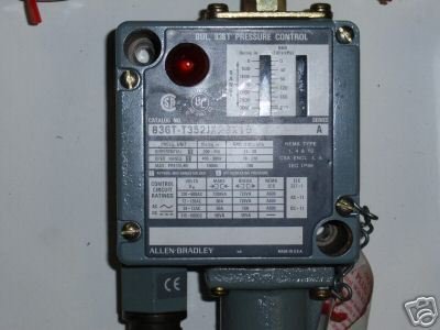 Allen Bradley 836T-T352Jx23X15 Pressure Switch 836T-T352JX23X15 pressure switche. nema 1,4,13. 5 pin mini qd port. Red pilot light. 0-3000 lbs sqi pressure adjust