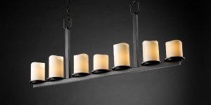 Justice Design CNDL-8779-10-AMBR-DBRZ-GU24 Dakota 7-Light Bar Chandelier?The rich golden glow of candles is captured in the contemporary CandleAria Collection. These fixtures come with candle-like shades that add considerable light, warmth, and charm to any room.