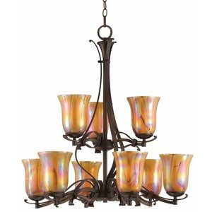 #Finish:Harvest Bronze, Glass:Decorator Art, Light Bulb:(9)100w A19 Med F Incand La Perla 9-Light 2-Tier Chandelier Only nature can compete with the beauty of the La Perla collection's hand-blown decorator art glass and serence Harvest Bronze finish. Includes 6 feet of chain and 12 feet of cord
