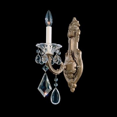 #Ornate baroque castings contrast with the purity of the crystal for a very traditional feeling.Application Indoor: Bathroom, Bedroom, Entry, Hallway, Game Room, Living Room Application Outdoor: Outdoor covered Bulb Type: Incandescent Collection: La Scala Effect: Decorative Hang Weight: 3 pounds Height: 16 Lamp 110v: B10 [Base E12 ] X 1 ( 60 MAX ) ( 25 REC ) Not Included Length: 5 Light Direction: Up Lighting Number of Lights: 1 Power Supply: Line Voltage Style: Renaissance Width: 8