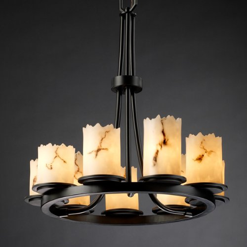 Justice Design FAL-8766-12-MBLK Dakota 9-Light Ring Chandelier?The LumenAria Collection offers the look of genuine carved alabaster without the cost. These faux alabaster fixtures combine many of your favorite shapes with the warmth and beauty of an alabaster glow.