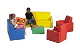 | ✚✚✚ 5 Pc Parlor Seating Set Includes one yellow sofa, blue love seat, green table and two red arm chairs Play is a child's most important work and The Children's Factory continues to be the World Leader in Soft Play.