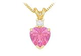 | ✚✚✚ Diamond and Pink Sapphire Solitaire Pendant : 14K Yellow Gold - 1.00 CT TGW Diamond and Pink Sapphi A heart-shaped natural pink sapphire is securely held in a luscious 14K yellow gold prong setting. Set atop a brilliant-cut diamond adds a touch of style. This gemstone pendant has a total weight (TGW) of 1.00ct and comes with a standard 16 14K yellow gold chain.