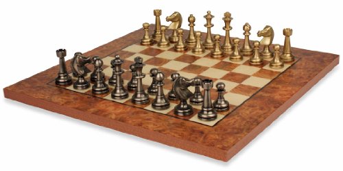 Staunton Brass Chess Set & Elm Burl Chess Board Package try making a full description and product details to find.